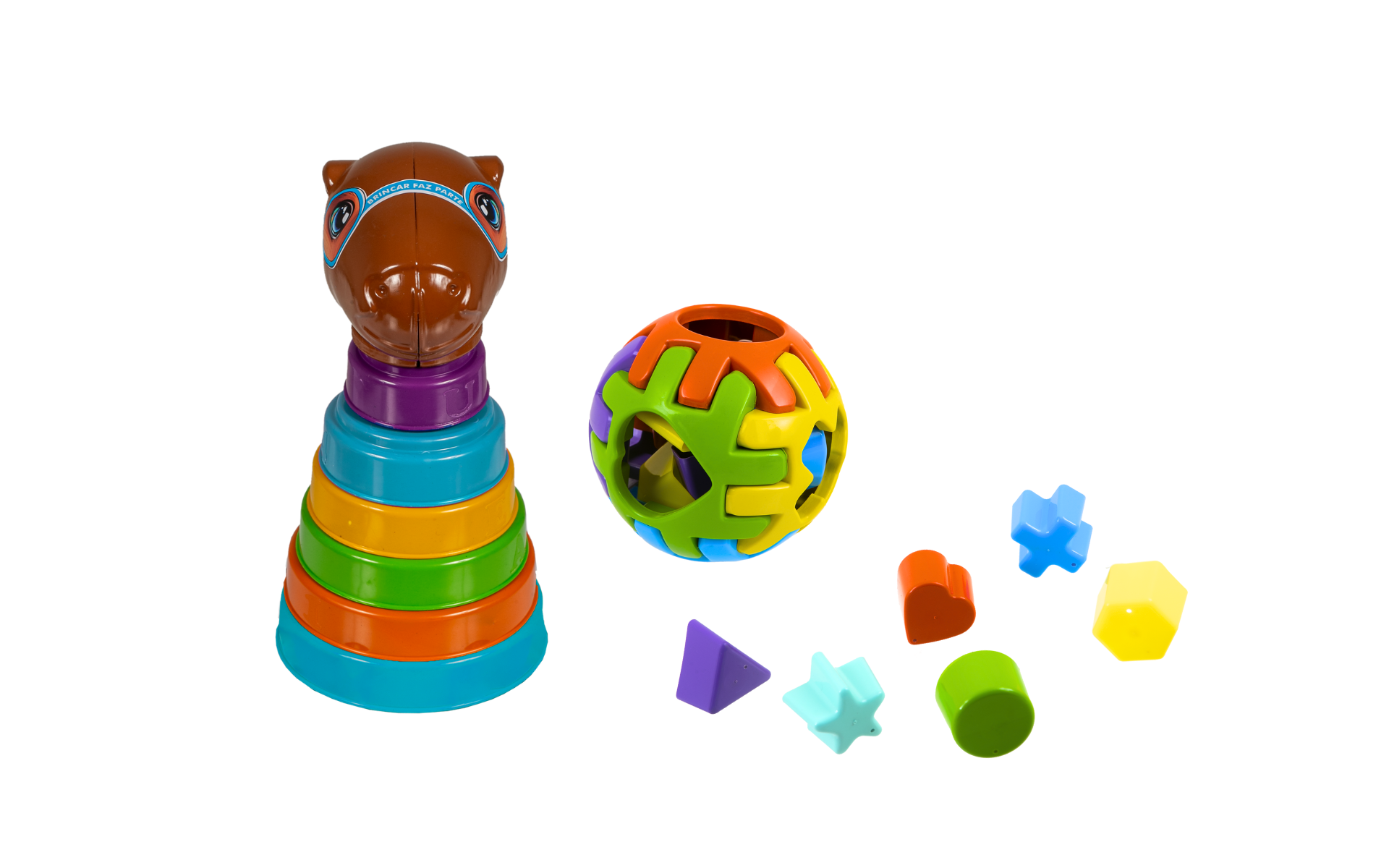 O Kit Kapi é a escolha perfeita para estimular a criatividade e o desenvolvimento dos pequenos! Com uma capivara com seis anéis coloridos para empilhar, com numeração e letras, e uma bola de encaixe com seis forminhas, esse brinquedo educativo ajuda na coordenação motora, no reconhecimento de cores e formas, tudo de maneira lúdica e divertida.