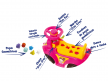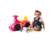 Este carrinho vem acompanhado de seis pecinhas geométricas coloridas que se encaixam no banco, proporcionando à criança o reconhecimento de formas durante a brincadeira. O banco também funciona como porta-objetos, podendo ser aberto e fechado, além de servir para armazenar outros brinquedos.