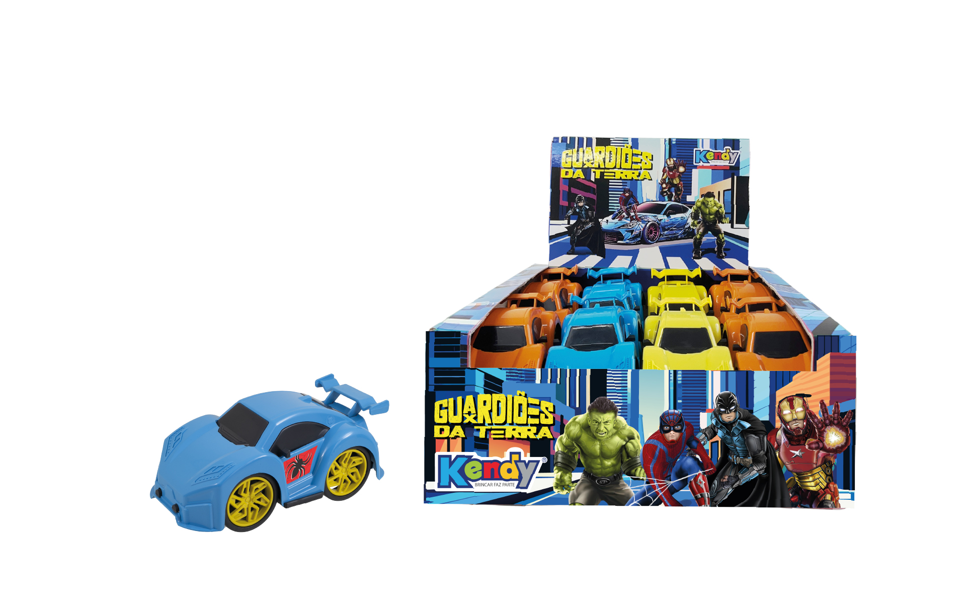 Descubra a diversão com o nosso display Kendy: 16 carrinhos temáticos de heróis, cada um com detalhes incríveis que vão encantar os pequenos aventureiros!