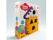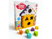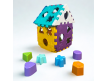 Estrutura montada com blocos coloridos, cada um com uma abertura em forma de estrela. As peças podem ser encaixadas ou empilhadas.